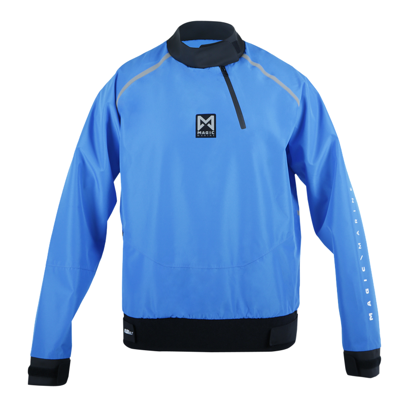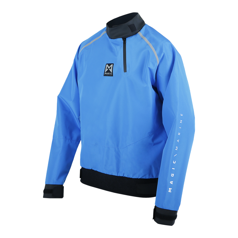 Gear up with the Brand Waterproof Spraytop, designed to keep you dry and comfortable, no matter the weather. This basic spraytop features a fully waterproof shell with a durable, adjustable waist belt that seals out water while offering a snug fit for optimal comfort. A convenient front zipper allows for easy entry, making it perfect for quick changes on the go. The cuffs are equipped with an adjustable hook-and-loop system, providing a secure fit to lock out moisture. Whether you're battling the elements on open waters or just staying shielded from sudden downpours, the Brand Waterproof Spraytop is built to keep you moving confidently in any condition.