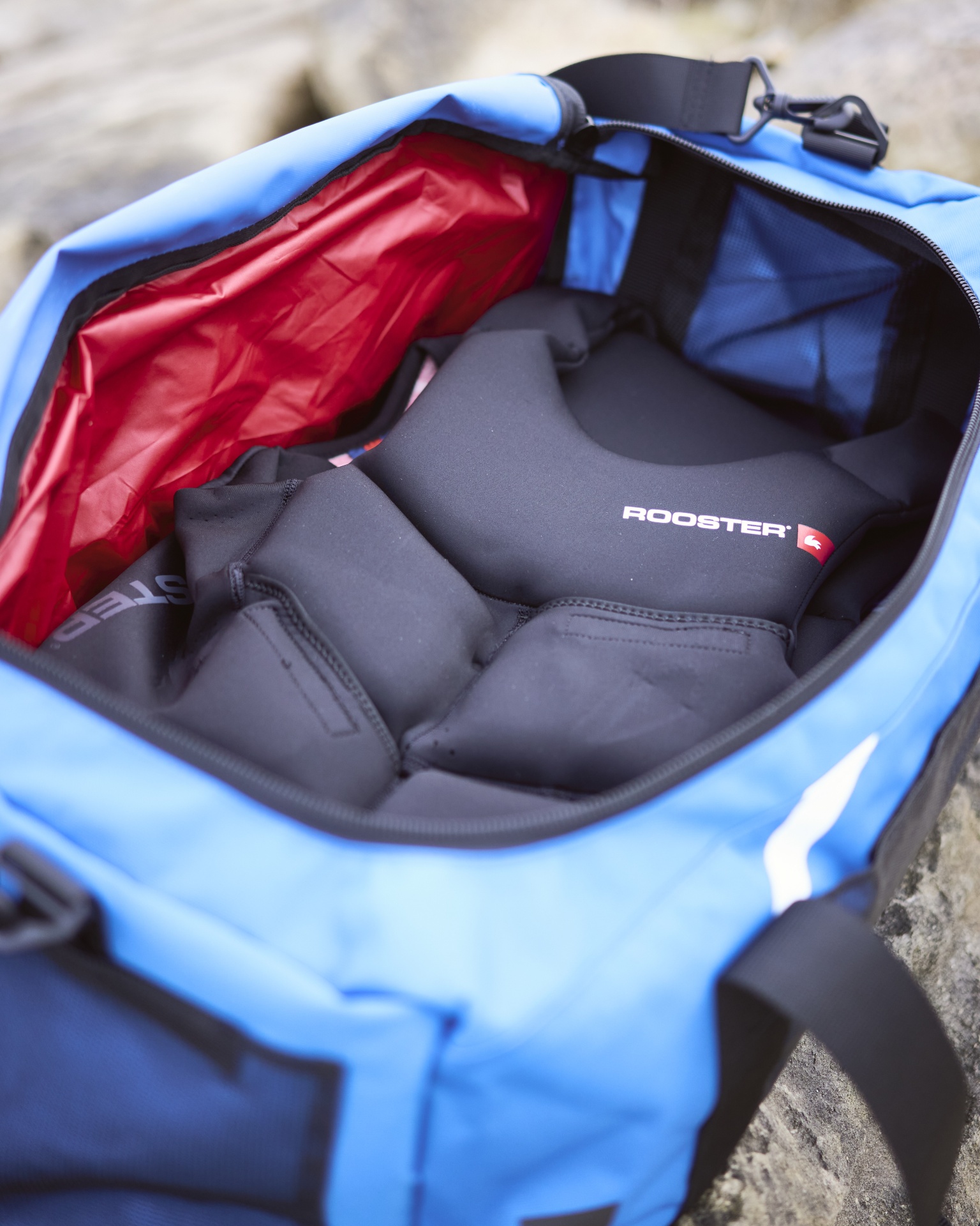 The Rooster® Carry All is available in 60L and 90L sizes. The 60L version include a padded detachable shoulder strap, lockable heavy duty YKK® zips on the main compartment and internal mesh pockets for your valuables. This bag features a large separate wet compartment, accessible down the length of the bag, which is taped and completely waterproof. There are also four external mesh pockets on the outside, for those easy to access handy items – snack bars, burgee, shampoo….