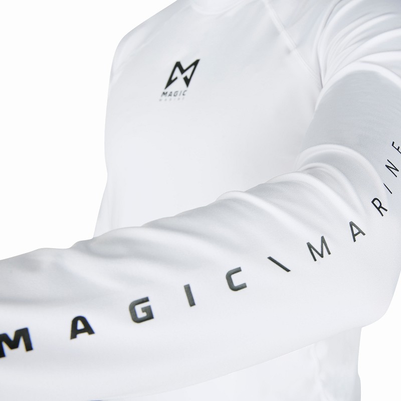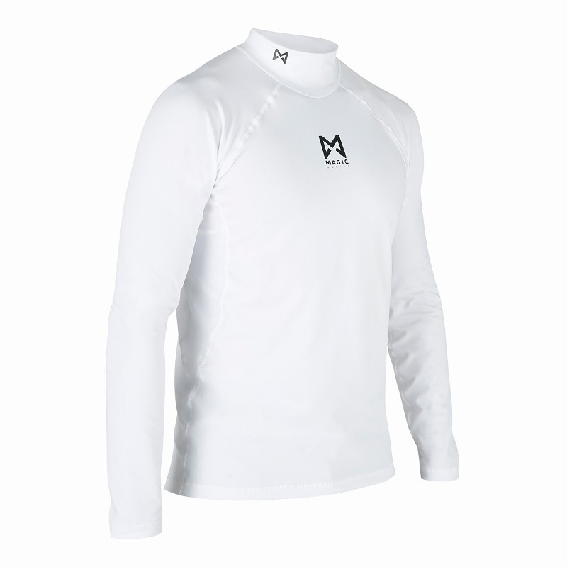 Camisola térmica branca de manga comprida com logótipo MAGIC preto e gola alta
