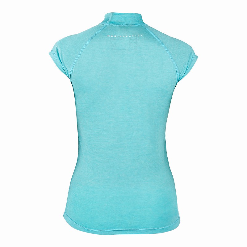 T-shirt desportiva azul clara com gola elevada