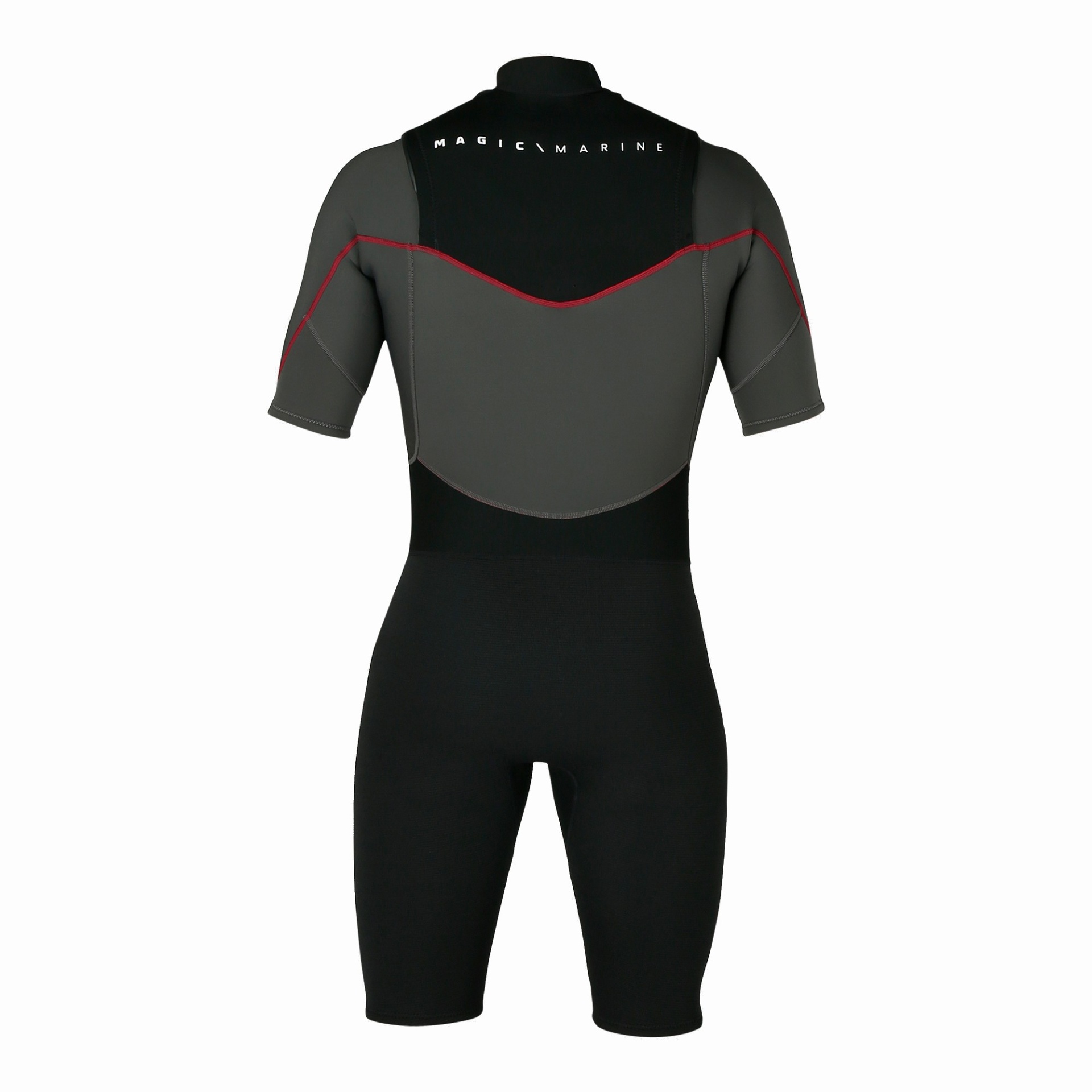 Fato de mergulho de neoprene cinza escuro e preto com texto MAGIC MARINE nas costas