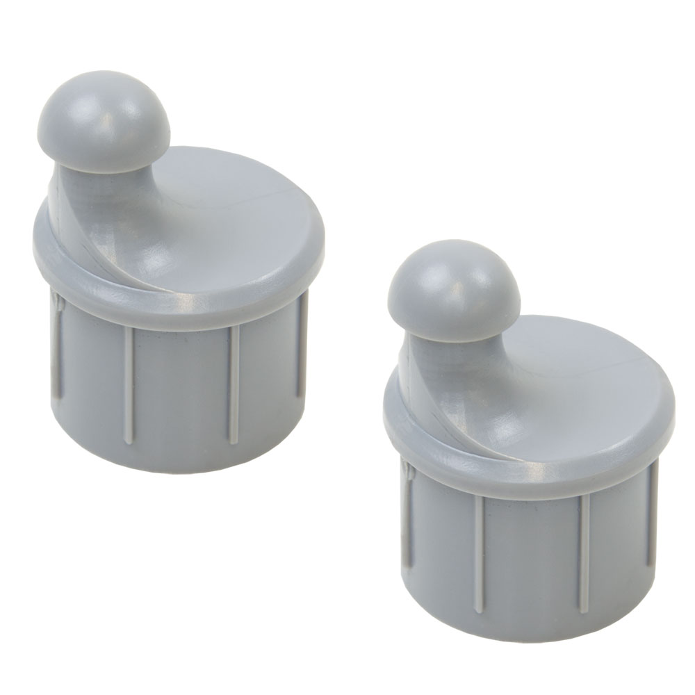 Dois botões ou tampas redondas cinzentas de plástico com botão em cima