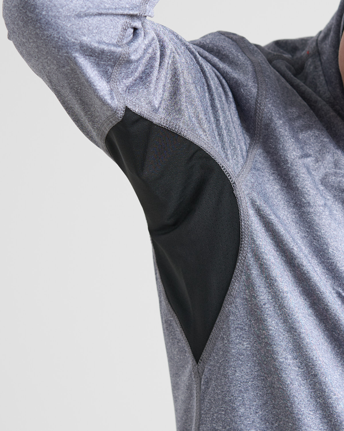 Casaco ou camisa desportiva cinzenta com inserção preta na axila