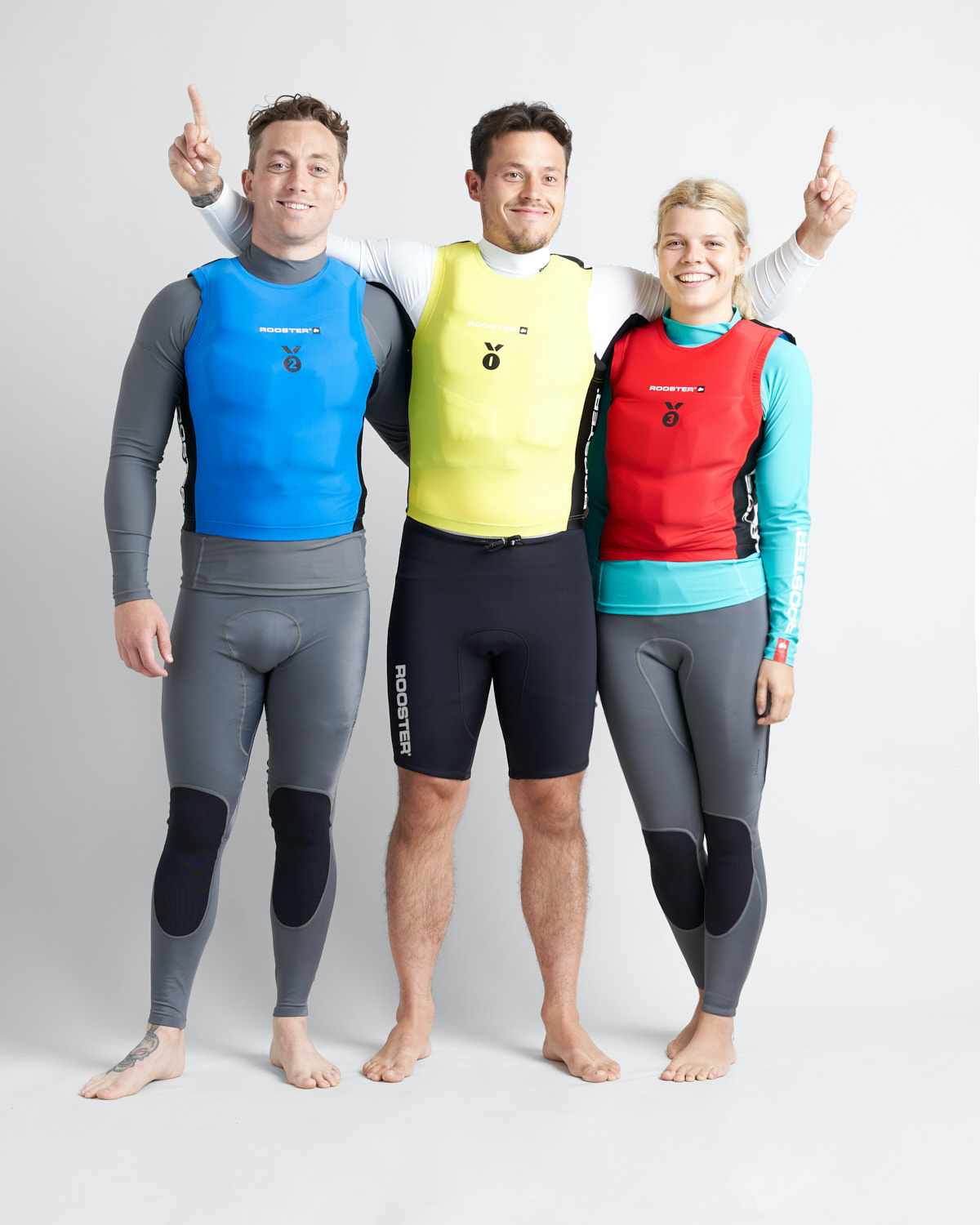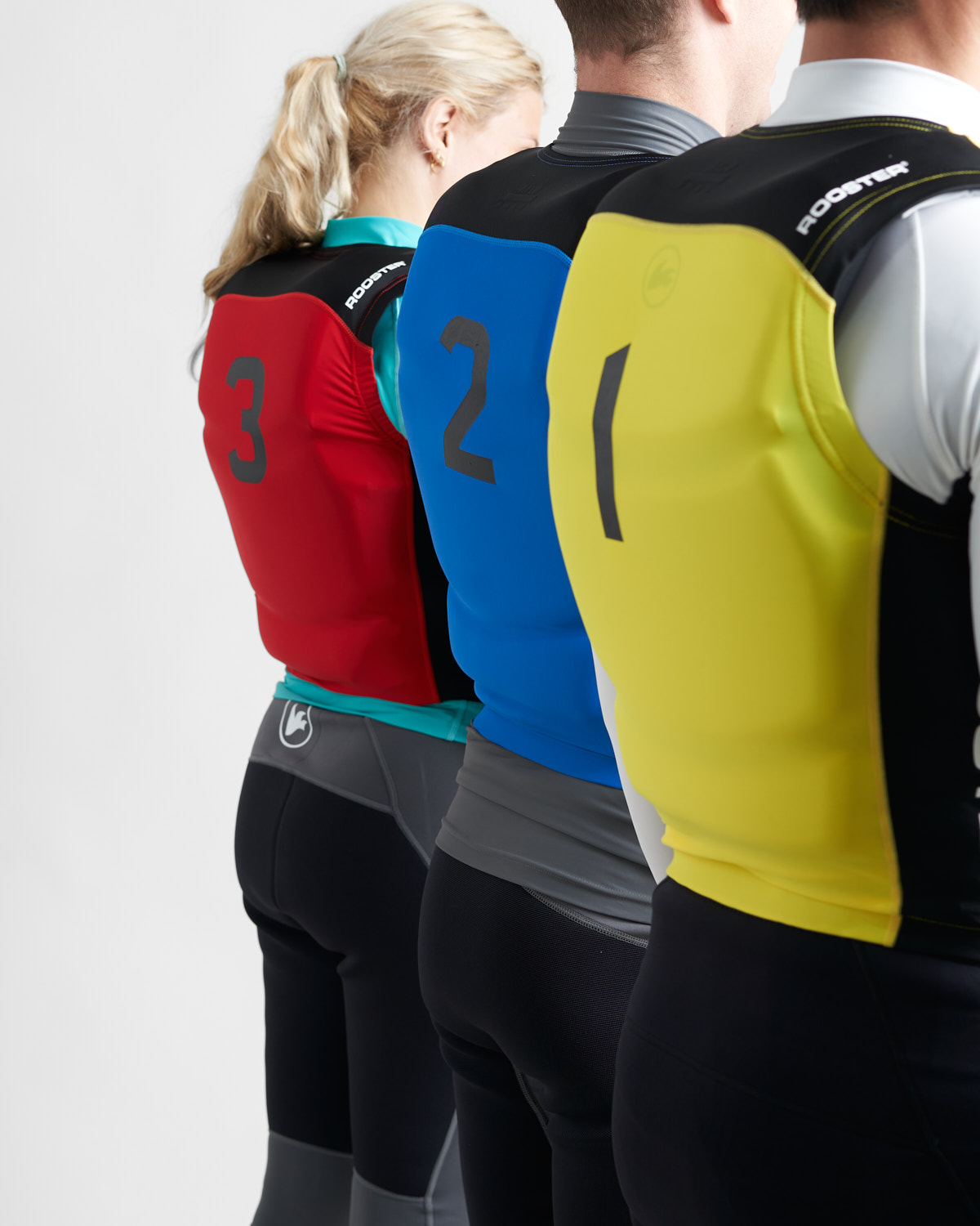 The Rooster Podium Bibs are designed to provide a streamlined, catch free fit when worn over the top of a buoyancy aid. The snug fitting lycra stretches over buoyancy aids and trapeze harnesses to minimise snags on sheets, trapeze and control lines and prevent tiller extensions getting hooked underneath shoulder straps.