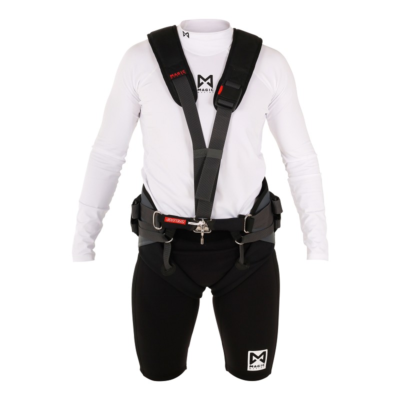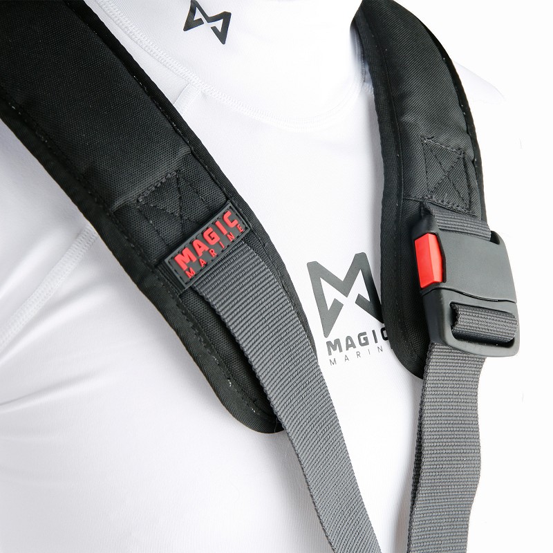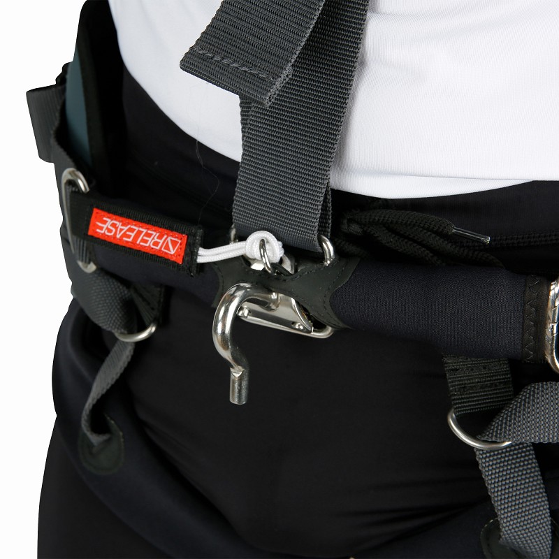 An update to our best seller, the ‘Pro Racing Harness’. This harness is designed to be an all round harness, suitable for a wide range of sailors. It has an internal back support at the mid-lower back to add a lumber support to promote all sailing conditions and positions. It features neoprene leg straps and a quick release spreader bar with adjustment at 4 parts for easy fitting. All straps from the adjustment can be stowed away neatly in an elastic pocket to keep out of the way. Great harness to take you through the elements!