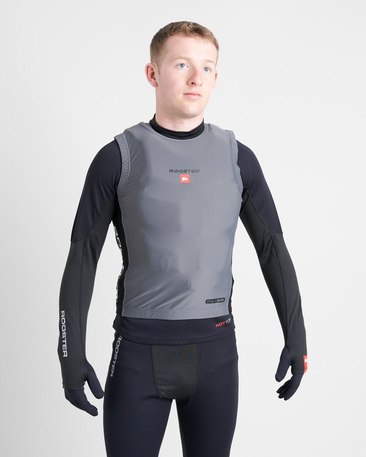 The Rooster Race Bib is designed to provide a streamlined, catch free fit when worn over the top of a buoyancy aid. The snug fitting lycra stretches over buoyancy aids and trapeze harnesses to minimise snags on sheets, trapeze and control lines and prevent tiller extensions getting hooked underneath shoulder straps.