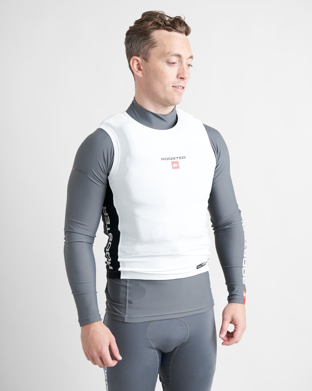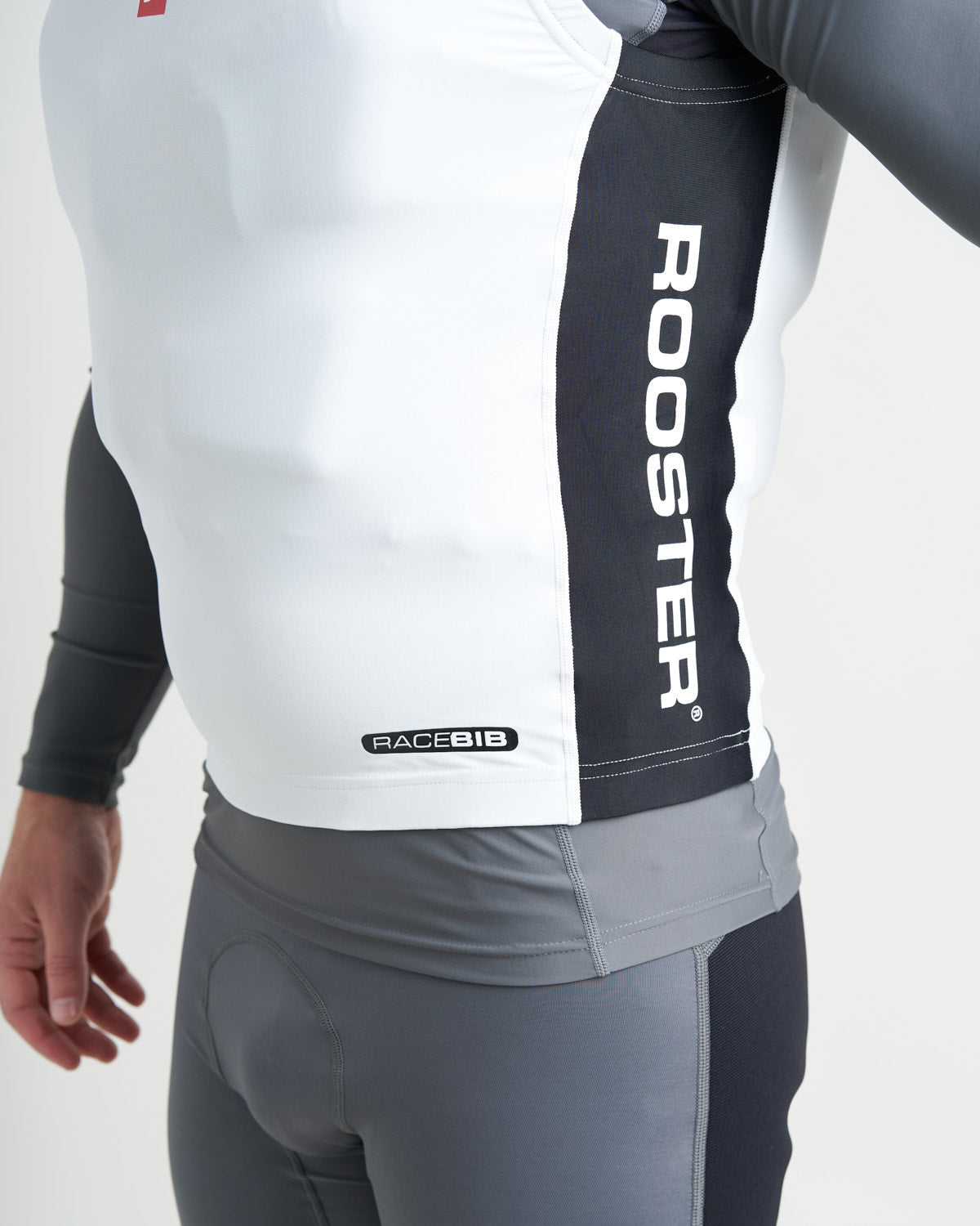 The Rooster Race Bib is designed to provide a streamlined, catch free fit when worn over the top of a buoyancy aid. The snug fitting lycra stretches over buoyancy aids and trapeze harnesses to minimise snags on sheets, trapeze and control lines and prevent tiller extensions getting hooked underneath shoulder straps.