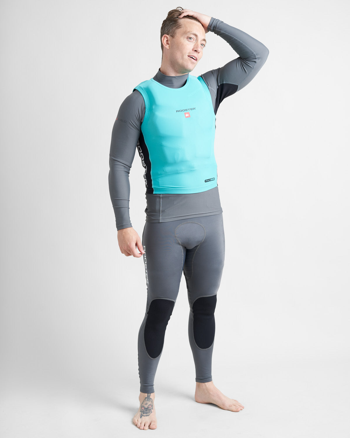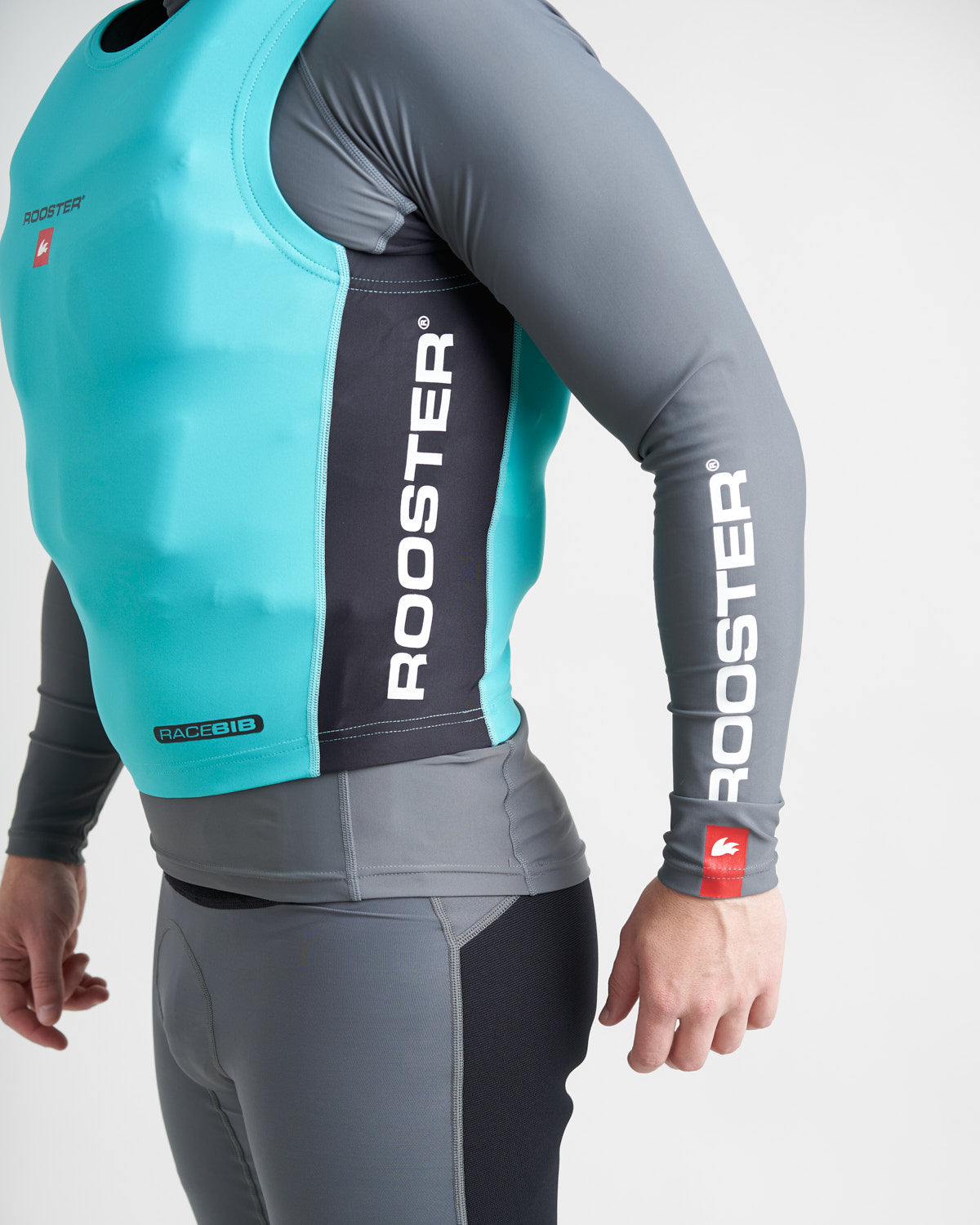 The Rooster Race Bib is designed to provide a streamlined, catch free fit when worn over the top of a buoyancy aid. The snug fitting lycra stretches over buoyancy aids and trapeze harnesses to minimise snags on sheets, trapeze and control lines and prevent tiller extensions getting hooked underneath shoulder straps.