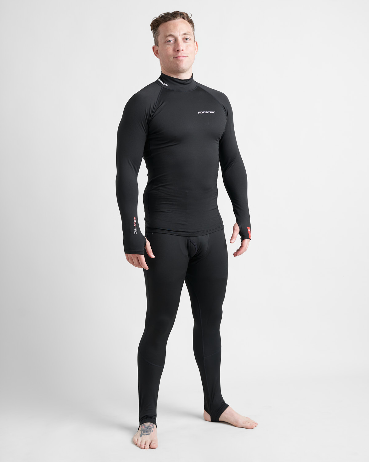 Rooster Polypro™ is constructed from a combination of Polypropylene (94%) and Elastane (6%). We've brushed the inner fabric surface to give it a thick, fleece-like, high quality texture which feels incredibly warm and soft next to your skin. The resulting garments provides excellent thermal qualities making it the perfect base layer. Polypropylene is naturally hydrophobic, which means the fabric feels remarkably dry, even when wet. Wear it next to your skin underneath our neoprene Longjohns and Tops - in fact the possibilities are endless - our Polypro™ base layers would be great under your ski suit, drysuit, winter cycling, kayaking, walking and anytime you need a thermal base layer..